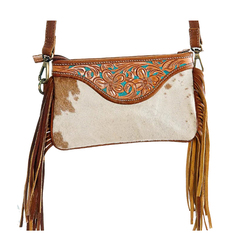 Premium kalite hakiki saç-on deri inek derisi bayanlar çanta çanta el çantası çiçek el Tooled oyma çanta ile ayarlanabilir kayış