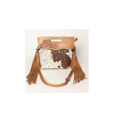 Premium kalite saç deri inek derisi bayanlar çanta çanta el çantası çiçek el Tooled pirinç donanım monte çanta sıcak satış