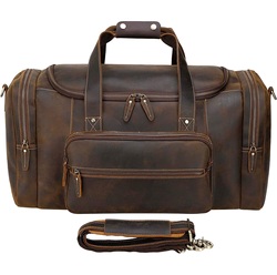 Premium 23 inç dayanıklı şık SS madeni teçhizat koyu kahverengi deri silindir çanta erkekler & kadınlar için spor salonu spor seyahat çantası toptan