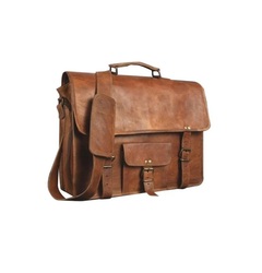 Premium vintage el yapımı koyu kahverengi renk Pin toka pirinç donanım donatılmış deri askılı çanta erkekler için laptop çantası toptan