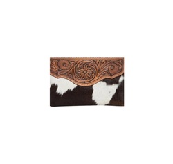 Premium kalite hakiki kahverengi beyaz saç-on deri inek derisi bayanlar çanta çanta el çantası çiçek el Tooled fermuar yakın çanta