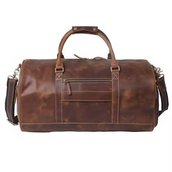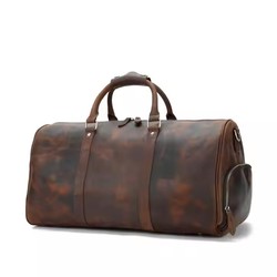 Premium kahverengi deri silindir çanta erkekler kadınlar için SS madeni teçhizat büyük kapasiteli moda spor spor seyahat çantaları toptan